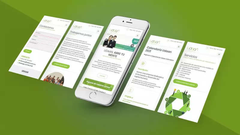 UDAAN es una empresa dedicada a la formación y desarrollo de capital humano. La página web tiene sección de cursos clasificados por línea y diplomados, catálogo de clientes y un acceso a usuarios para su sistema de aula virtual.
